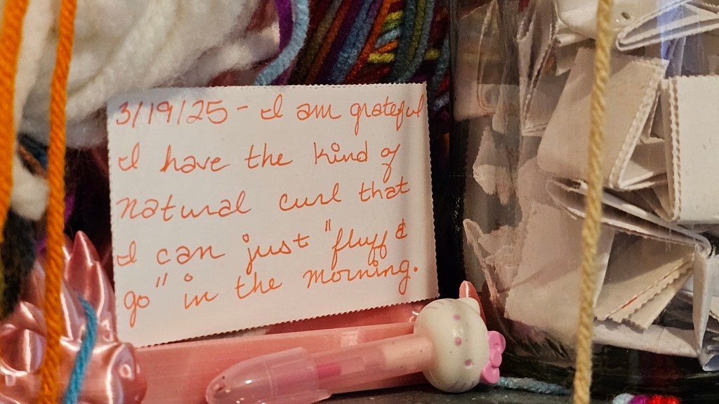 I was blessed with natural, corkscrew curls. While I do prefer when my hair is straight, this does not look bad for a natural look. Actually, when I consider the amount of time people spend doing their hair to make it curl this much… I must say I really am enjoying the fact that I only had to fix the side that was lying on my pillow while I slept. Even then, it was just a little fluffing and adjusting how it was laying.